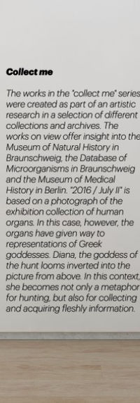 Marlene Bart explores the methodological intersections between art and science. In her exhibition "Zwischen Haut und Knochen" (Between Skins and Bones), she presents a series of works in which she engages playfully with representations of organic components. By transgressing the boundaries between the "human" and "animal" body, she creates complex visual structures that suggest the need for a reconfiguration of the relationship between the human body and nature in the Anthropocene.